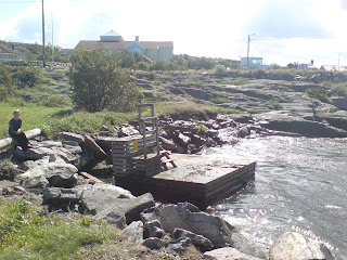 Under höstens(?!) första storm under kvällen /natten den 13/14 augusti slet sig vår badflotte, och drev in i viken. Då förtöjningarna har släppt på botten, var vi tvungna att ta upp den för säsongen. Som ses av foto gjorde den hödga vattennivån i kombination med vågorna att även rutschkanan slets loss, och är tyvärr även den ur funktion.Återigen stort tack till Hellbergs Åkeri för lyfthjälp! Behöver ni transporter eller i/urtagning av båten finns de till tjänst. www.hellbergsakeri.se